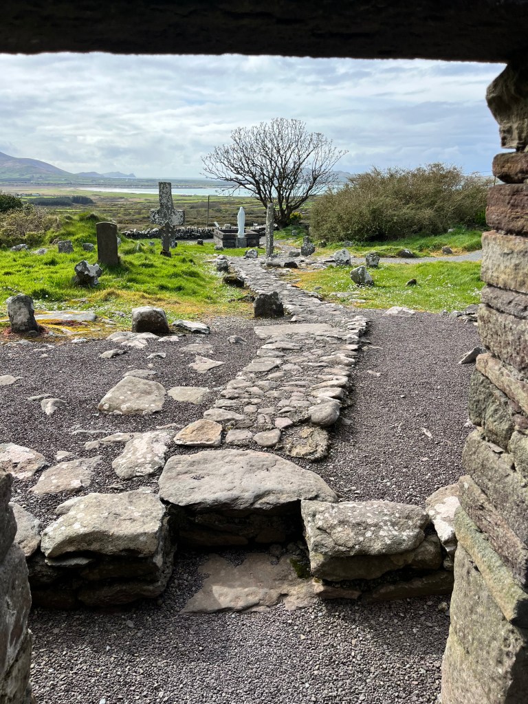 So I light three candles in the ruins of an 12th century oratory, and I say my Easter prayers. The church at Cill Maoilchéadair was built at the end of an ancient pilgrim’s route associated with St. Brendan and has welcomed seekers for a thousand years. In its day, it was the “St. James Cathedral at the end of the Camino de Santiago” for those walking to God across Ireland; it was resplendent because it was the place of the soul’s resurrection. And as each pilgrim stepped out of the building and back onto the stone path overlooking the Atlantic Ocean, there was, at the end of it all, only more pilgrimage.